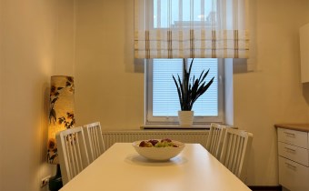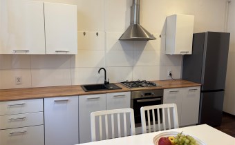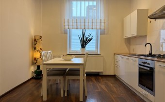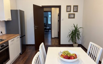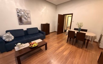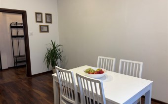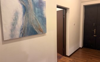 Mieszkanie dwupokojowe o powierzchni 75 m², położone na pierwszym piętrze. Okna wychodzą na południe i północ, dzięki czemu wnętrze jest jasne, rozkładowe i przewiewne. W oknach rolety i zasłony.